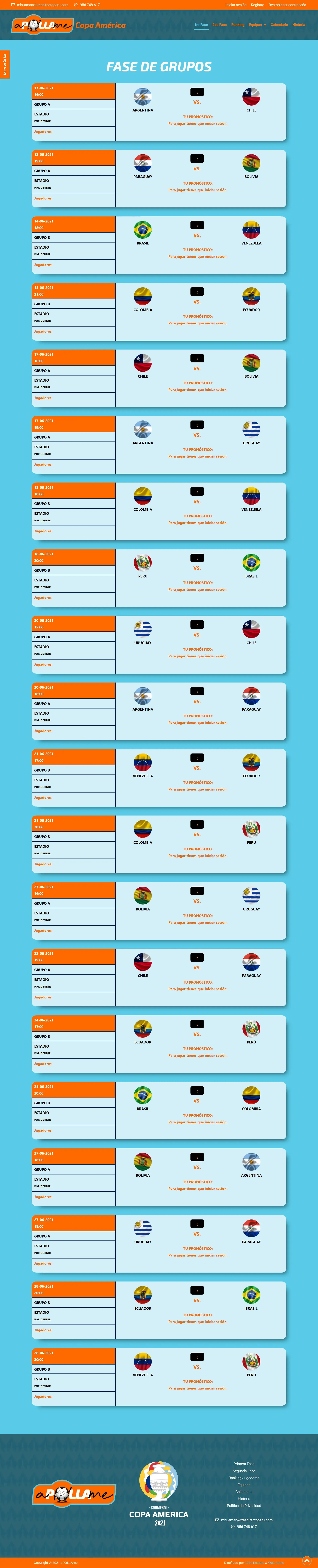Página web de predicciones y apuestas entre amigos, realizado para la copa américa 2021.