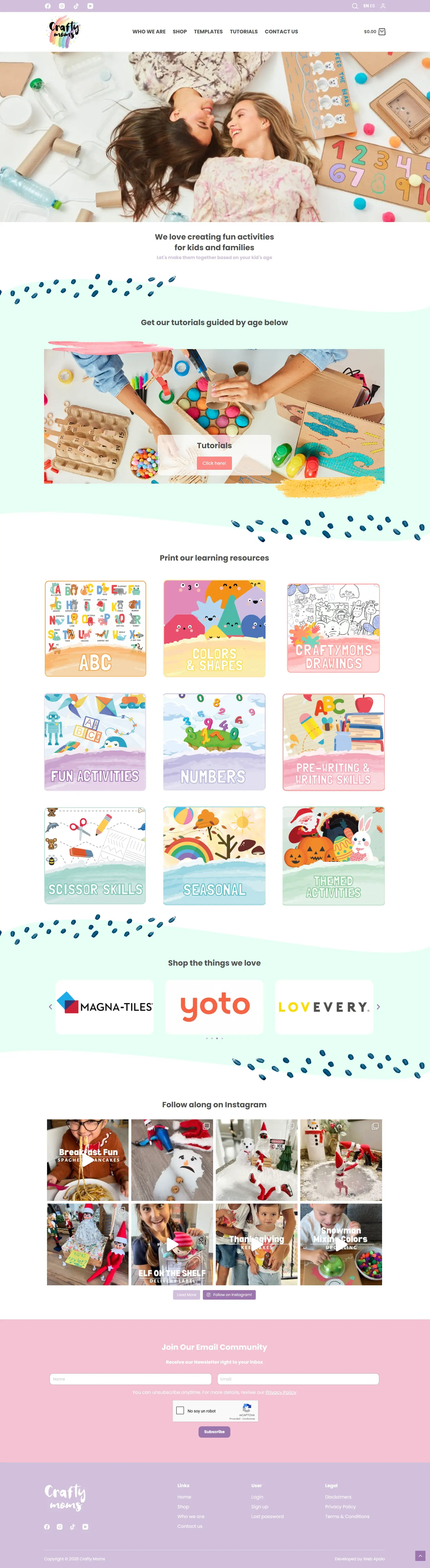 Crafty Moms es una tienda online de Estados Unidos enfocada en actividades creativas y educativas para niños y familias. Su propuesta combina la venta de productos con recursos didácticos como imprimibles, tutoriales y guías por edades.