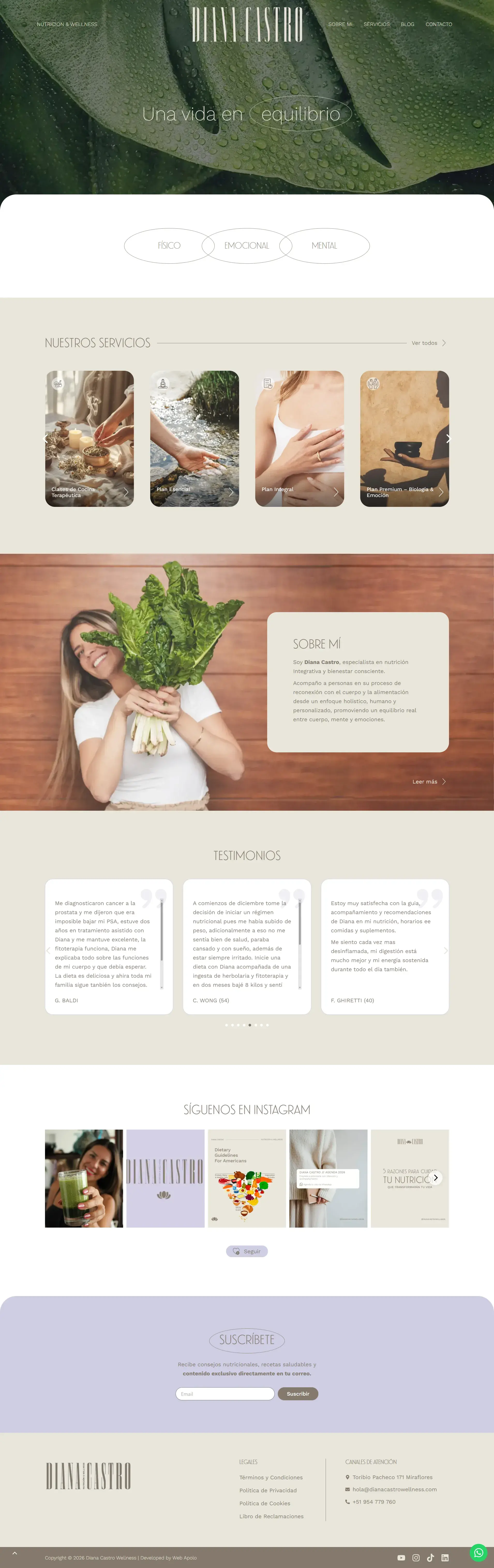 Plataforma web para Diana Castro, nutricionista especializada en bienestar integral y medicina natural.