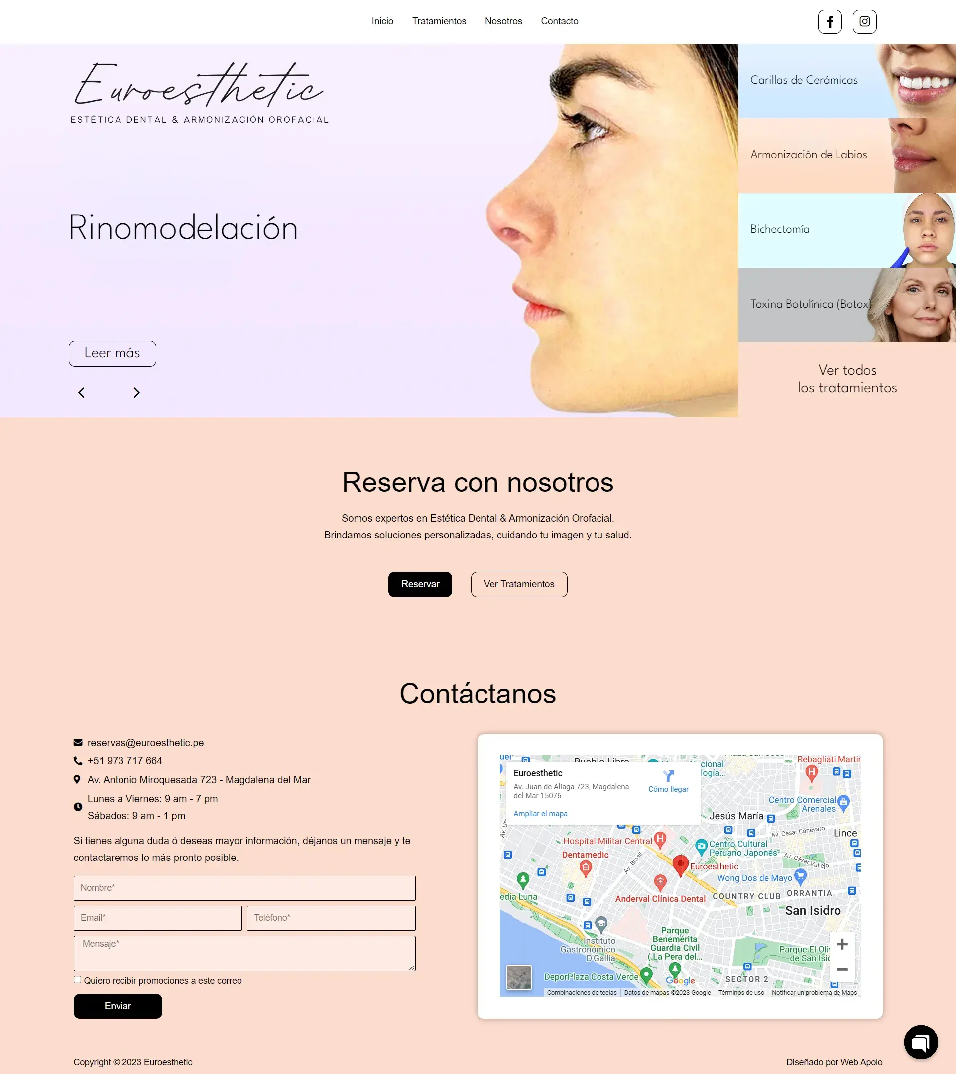 Diseño web personalizado y responsive. Diseño y desarrollo de banner interactivo, presentación de servicios estéticos.