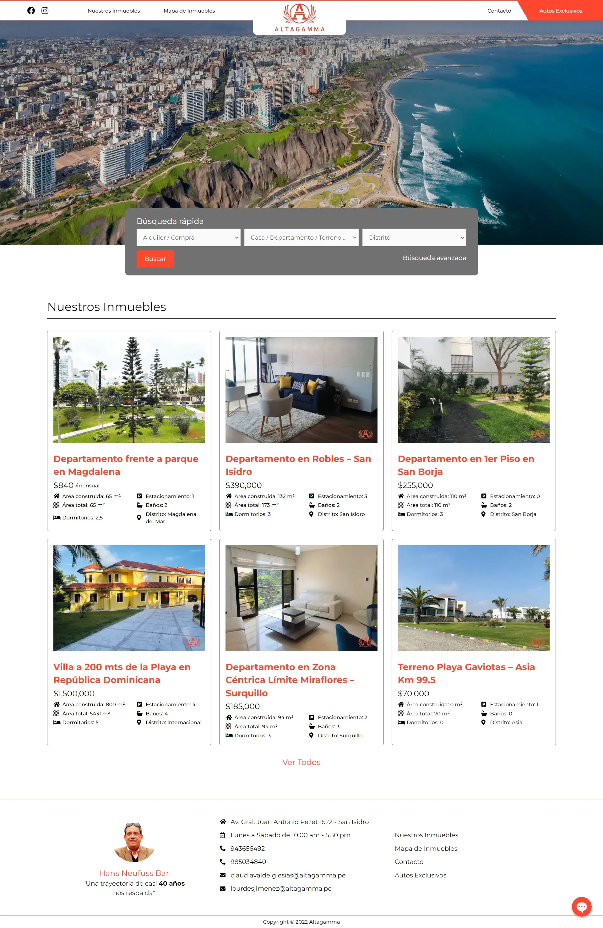 Empresa dedicada a la inmobiliaria de lujo. Sitio web con diseño reposponsive y personalizado, filtros avanzados. Mapa de geolocalización de los inmuebles.