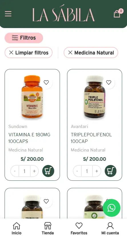 La plataforma ofrece una experiencia de compra intuitiva, destacando por la implementación de filtros avanzados que facilitan la búsqueda de productos por categoría y marca. El sitio está totalmente optimizado para móviles (responsive), integrando carrito de compra dinámico, gestión de favoritos, comparación de productos y atención directa vía WhatsApp. Es una solución e-commerce robusta que combina una estética limpia con una funcionalidad técnica de alto nivel para el sector bienestar.