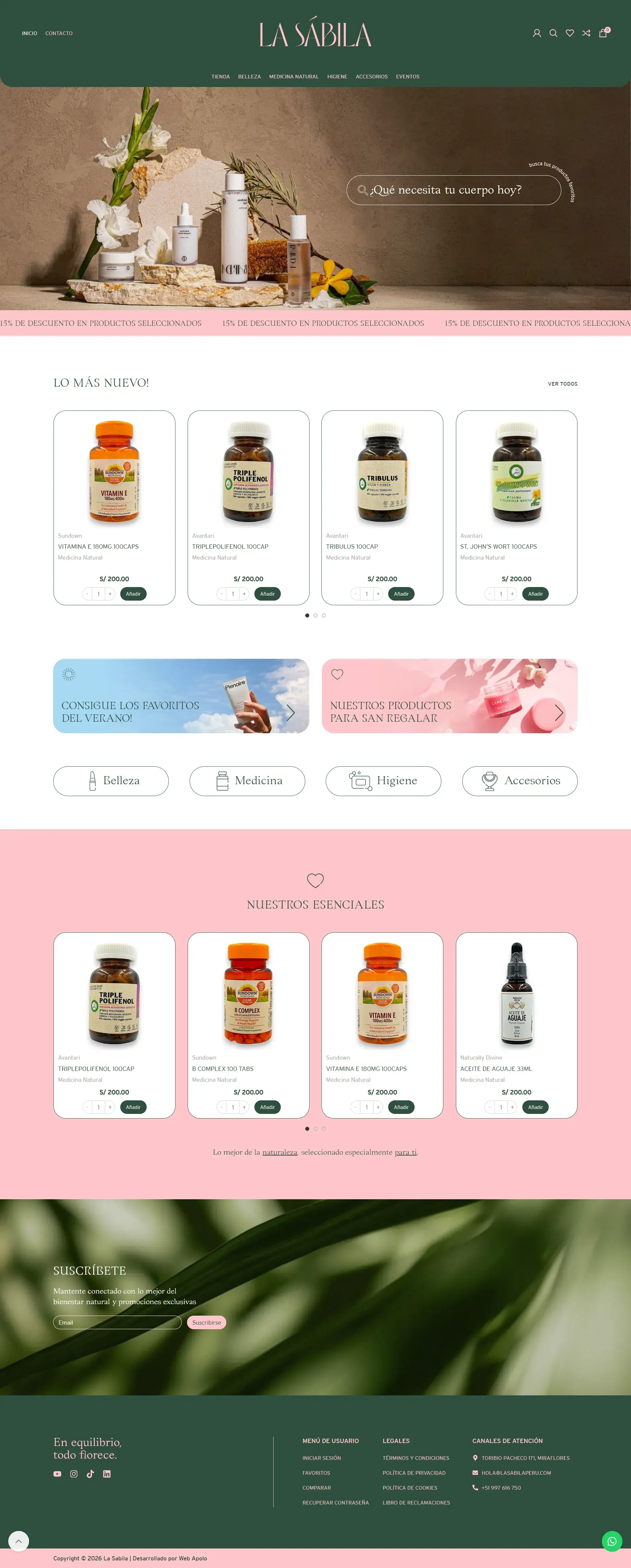 La Sábila es una tienda online peruana de medicina natural y belleza orgánica con un diseño personalizado y elegante.