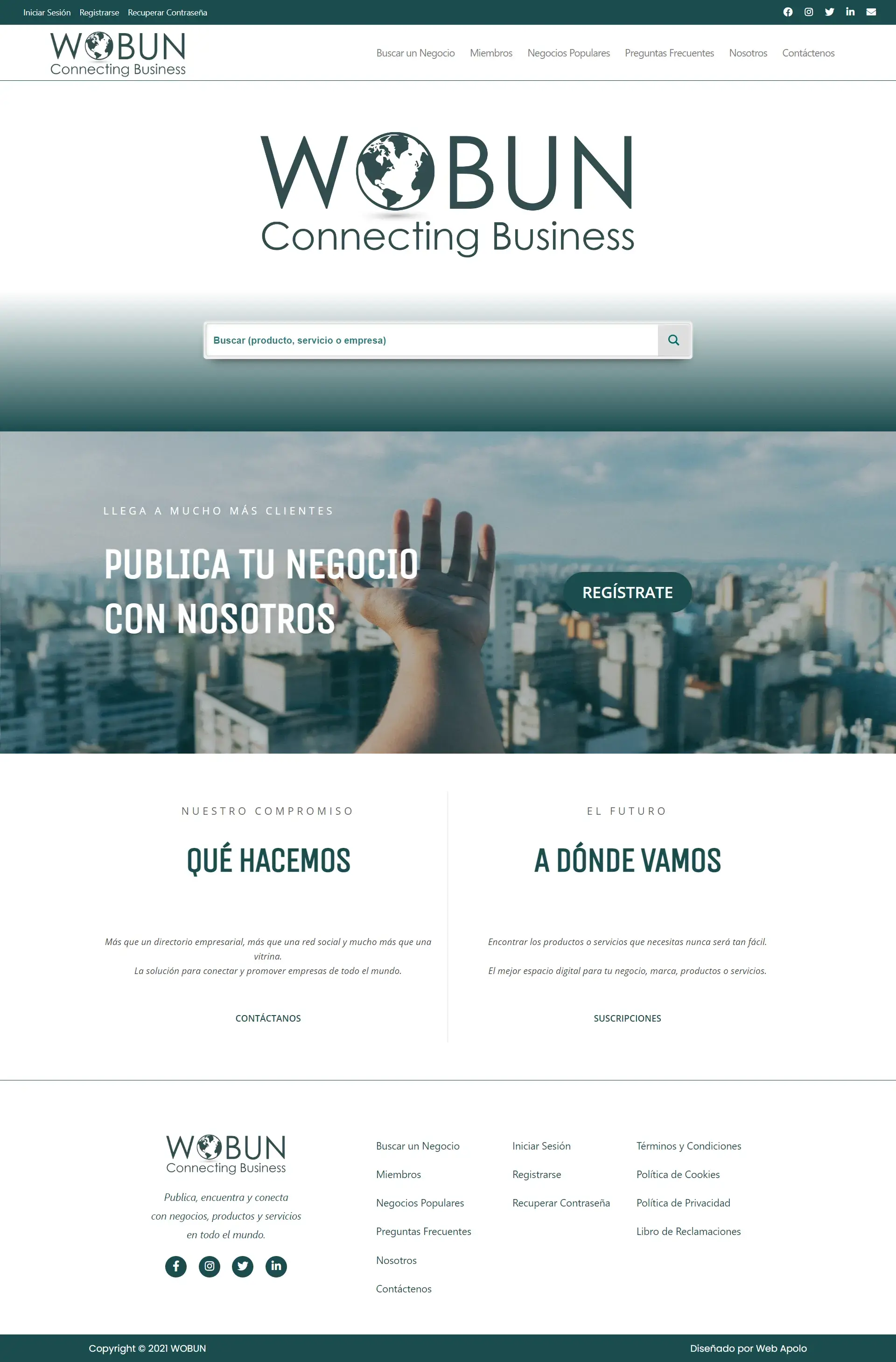 Directorio que permite el registro online. Brinda al usuario que se registra la capacidad de agregar archivo PDF, fotos, descripcion del negocio, ubicacion con geolocalización, video (previamente subido a youtube), enlace de redes sociales.